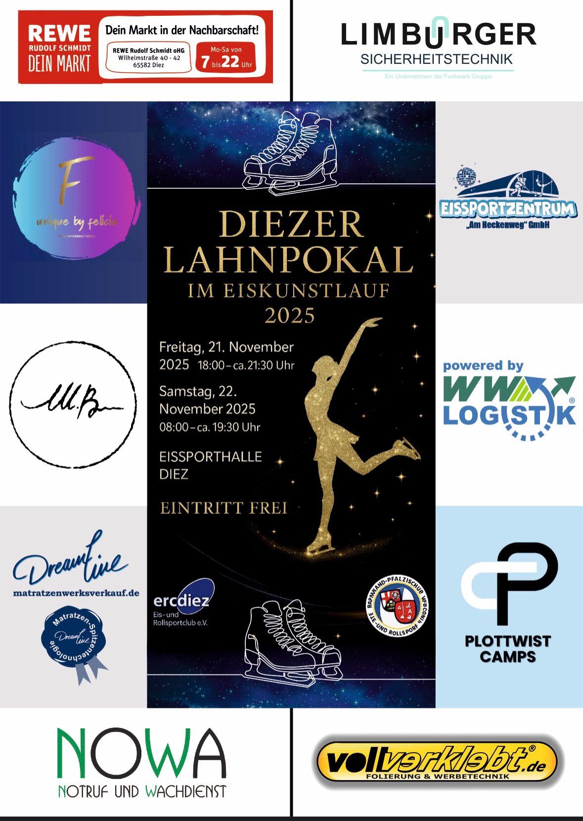 Kommt vorbei und erlebt die Faszination des Eiskunstlaufs live, wir freuen uns auf ein sportliches, funkelndes Wochenende beim Diezer Lahnpokal 2025!